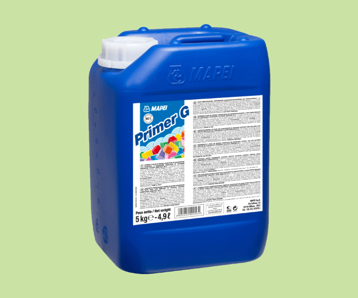 Mapei Primer G is a synthetic resin-based primer that, once applied to any surface, dries to form a flexible, compact, shiny coating that consolidates the surface, where needed. Mapei Primer G also improves the adhesion of smoothing compounds, paint, adhesive for wallpaper, adhesive for tiles, and mortar for renders. The film of Mapei Primer G on the surface of gypsum or cement prevents any chemical reaction between sulfates and the cement alluminates of gypsum which, in the presence of moisture, leads to the formation of the salt “ettringite’’ which is the cause of the separation of the two elements. The use of Mapei Primer G when papering allows for to reduction of the substrate’s absorption and, as a result, the amount of glue used, thus making the wallpaper removal much easier.